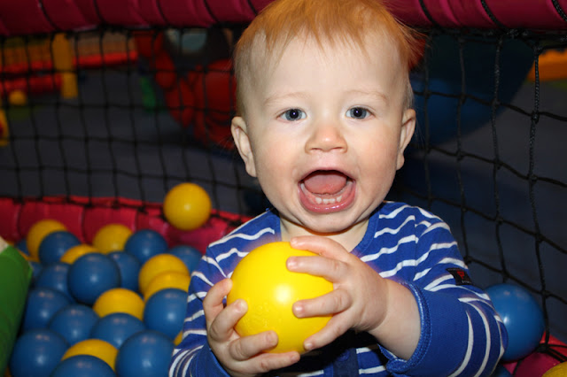 På Stellas Lekland var det inte alls mycket folk för att vara en fredag. Antagligen jobbade de flesta fortfarande, helt perfekt. Senast vi var där tyckte Molle det var otäckt med alla bollarna och ville inte alls sitta i bollhavet. Men igår var det inga bekymmer alls utan han ville snarare inte upp därifrån. Joppe sprang direkt iväg och började klättra upp till rutschkanorna. Vi trodde som vanligt att Joppe skulle uppskatta alla rutschkanor mest, men igår tyckte han det var roligast att ta sig runt överallt och klättra upp och ner.